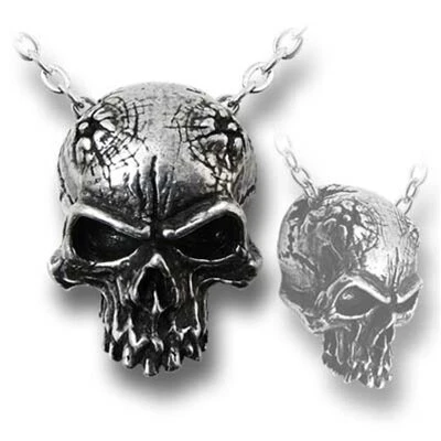 This Alchemy pendant is the skull of an emerging nightmare. All pendants are cast and hand-made in fine English pewter, many have additional high quality crystals and components, hand plated or other two-tone finish and come complete with nickel-free chain or other necklace of appropriate length.